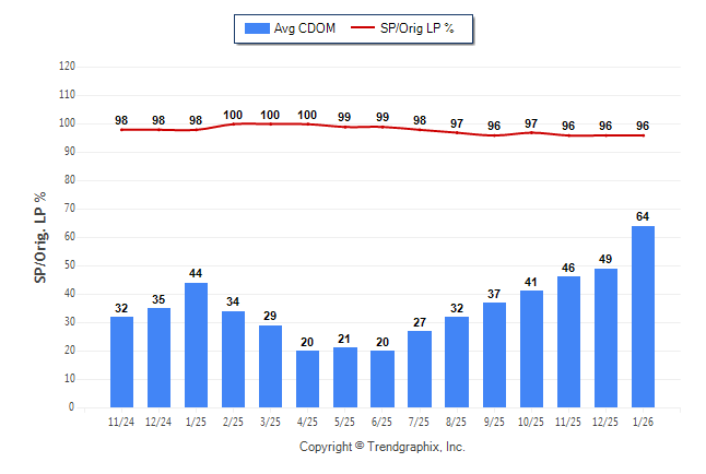 January 2026 Average Continuous Days on Market trend was Rising and Sold/Original List Price Ratio was Falling**