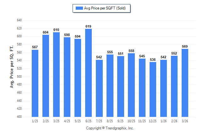 March 2026 Average Sold Price per Square Footage was Appreciating**