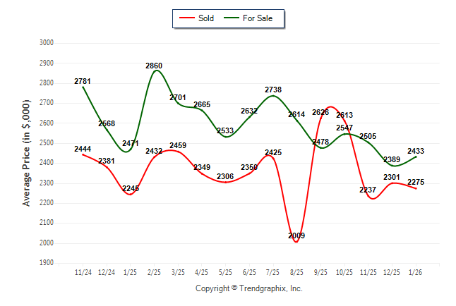 January 2026 Average For Sale Price was Neutral and Average Sold Price was Neutral**