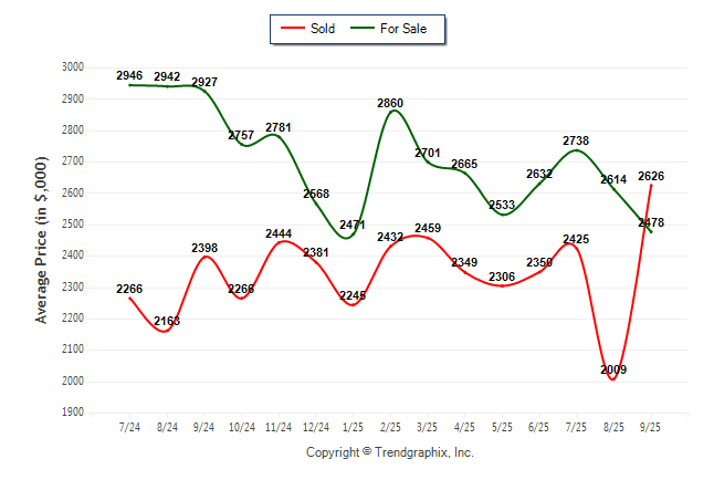 September 2025 Average For Sale Price was Neutral and Average Sold Price was Appreciating**