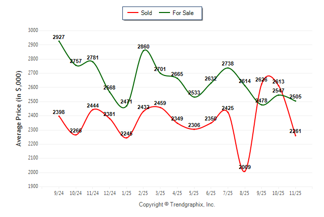 November 2025 Average For Sale Price was Neutral and Average Sold Price was Neutral**