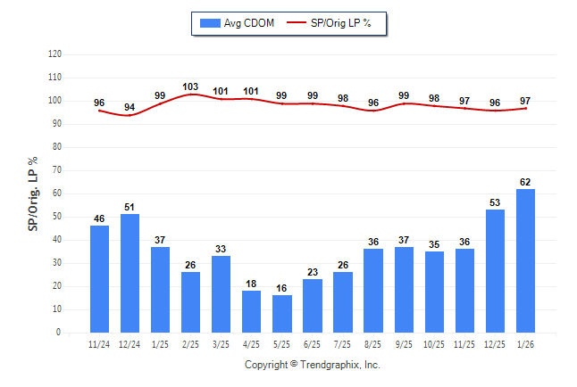 January 2026 Average Continuous Days on Market trend was Rising and Sold/Original List Price Ratio Remains Steady**