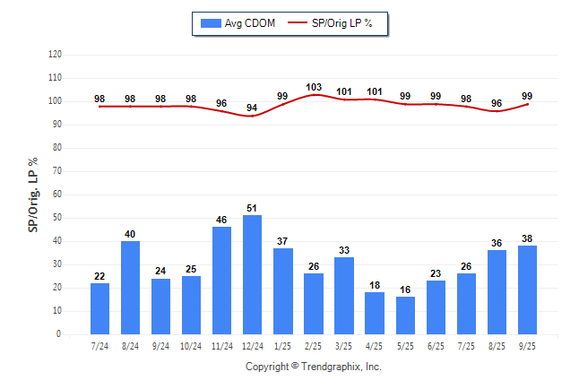 September 2025 Average Continuous Days on Market trend was Rising and Sold/Original List Price Ratio Remains Steady**