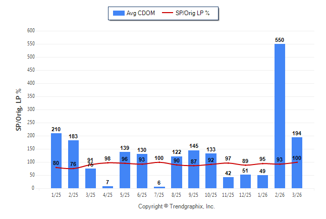 March 2026 Average Continuous Days on Market trend Remains Steady and Sold/Original List Price Ratio was Rising**
