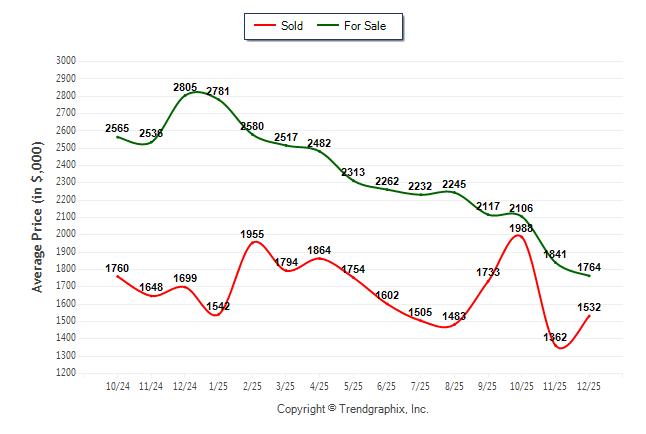 December 2025 Average For Sale Price was Depreciating and Average Sold Price was Neutral**