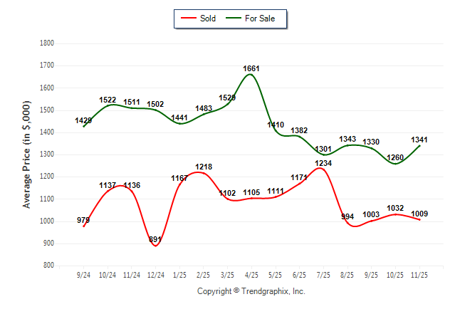 November 2025 Average For Sale Price was Neutral and Average Sold Price was Neutral**