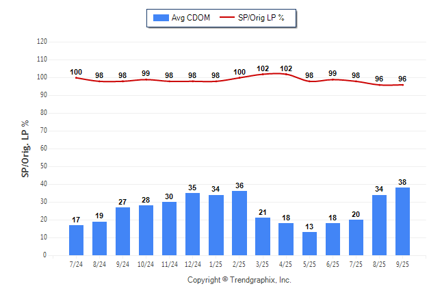 September 2025 Average Continuous Days on Market trend was Rising and Sold/Original List Price Ratio was Falling**