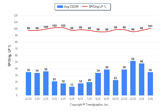 February 2026 Average Continuous Days on Market trend Remains Steady and Sold/Original List Price Ratio Remains Steady**