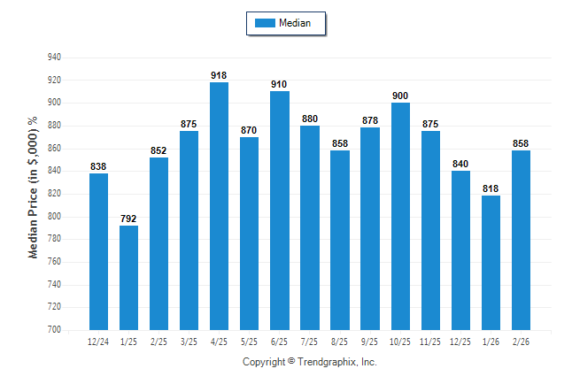 February 2026 Median Sold Price was Neutral**