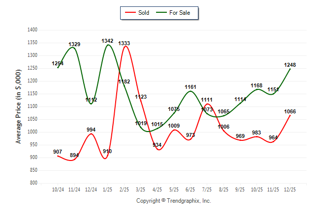 December 2025 Average For Sale Price was Appreciating and Average Sold Price was Neutral**