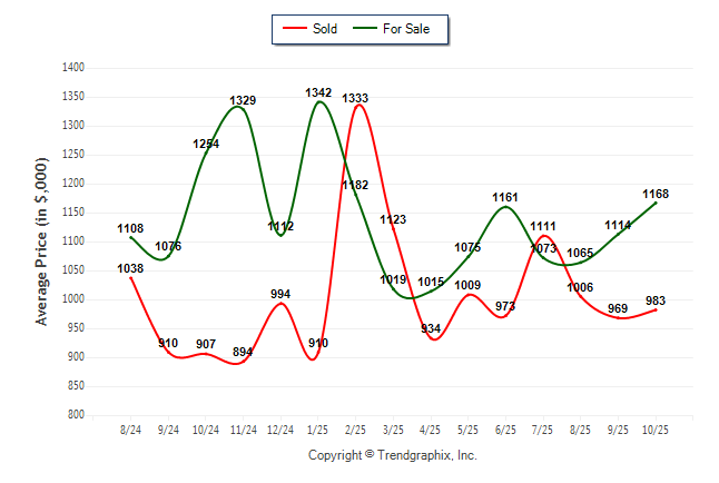 October 2025 Average For Sale Price was Appreciating and Average Sold Price was Neutral**