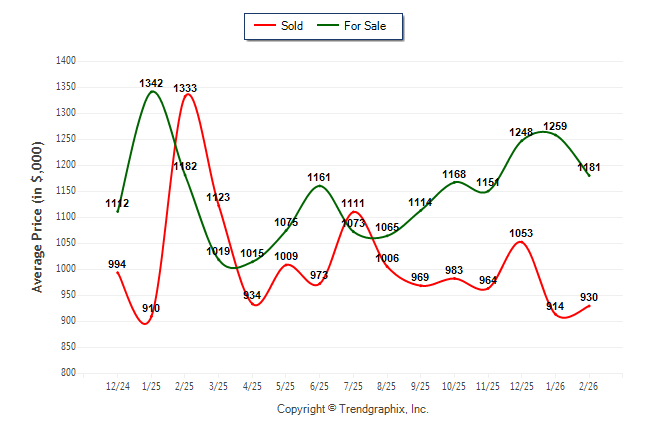 February 2026 Average For Sale Price was Neutral and Average Sold Price was Neutral**