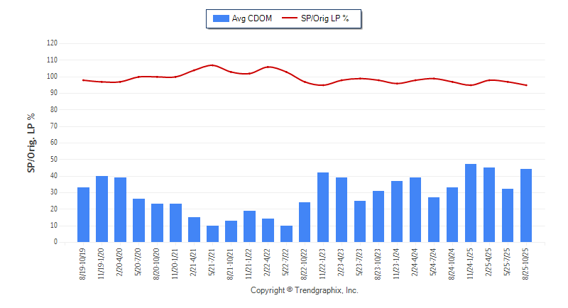 October 2025 (Quarterly) Average Continuous Days on Market trend Remains Steady and Sold/Original List Price Ratio Remains Steady**