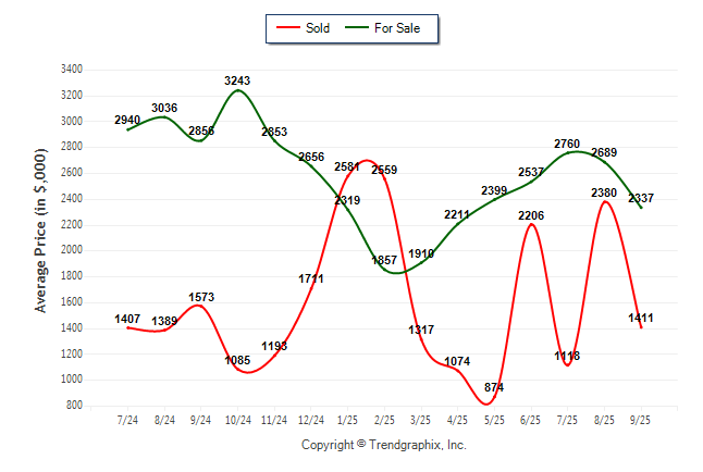 September 2025 Average For Sale Price was Neutral and Average Sold Price was Neutral**