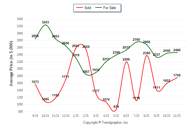 November 2025 Average For Sale Price was Neutral and Average Sold Price was Neutral**