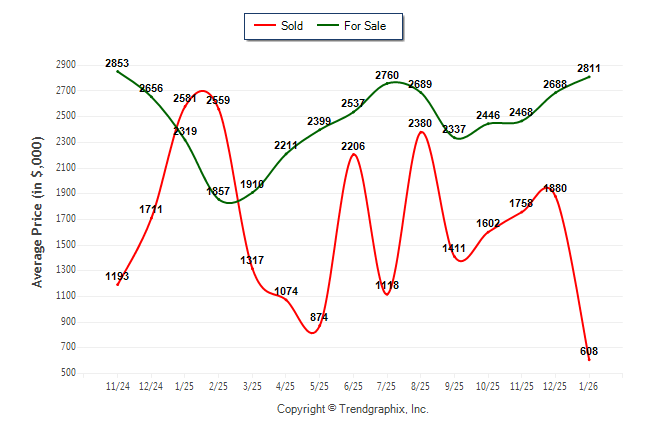 January 2026 Average For Sale Price was Appreciating and Average Sold Price was Depreciating**