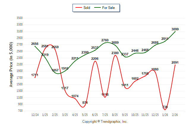 February 2026 Average For Sale Price was Appreciating and Average Sold Price was Neutral**