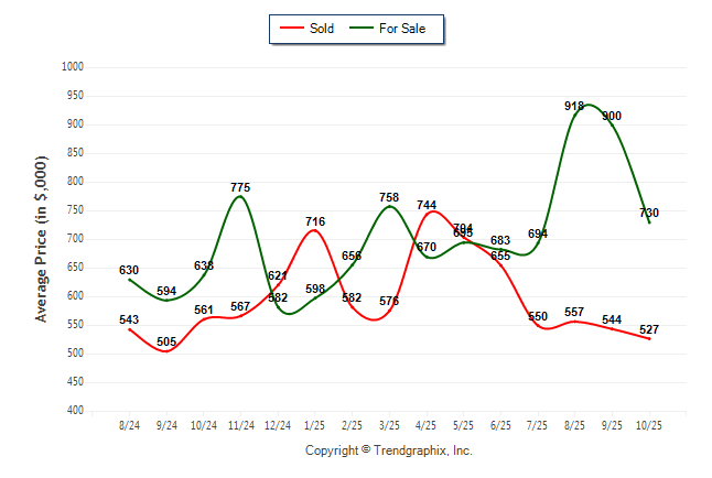 October 2025 Average For Sale Price was Neutral and Average Sold Price was Depreciating**