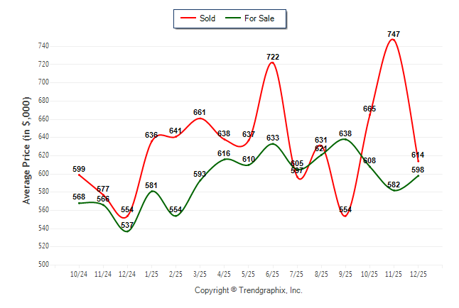 December 2025 Average For Sale Price was Neutral and Average Sold Price was Neutral**