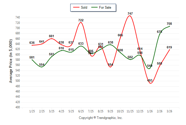 March 2026 Average For Sale Price was Appreciating and Average Sold Price was Neutral**