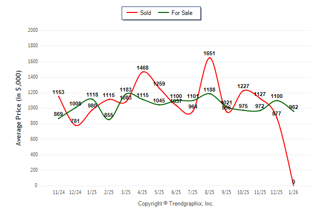 January 2026 Average For Sale Price was Depreciating and Average Sold Price was Depreciating**