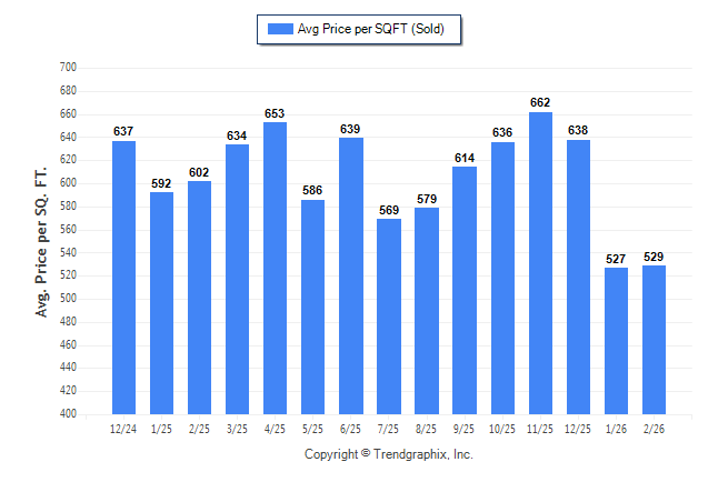 February 2026 Average Sold Price per Square Footage was Neutral**