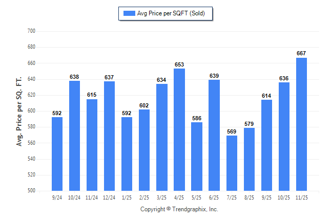 November 2025 Average Sold Price per Square Footage was Appreciating**