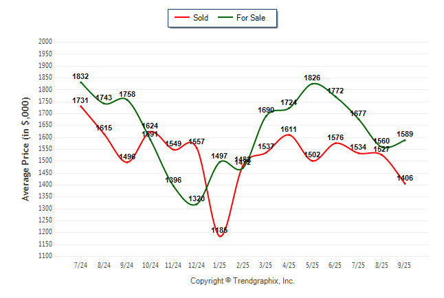 September 2025 Average For Sale Price was Neutral and Average Sold Price was Depreciating**
