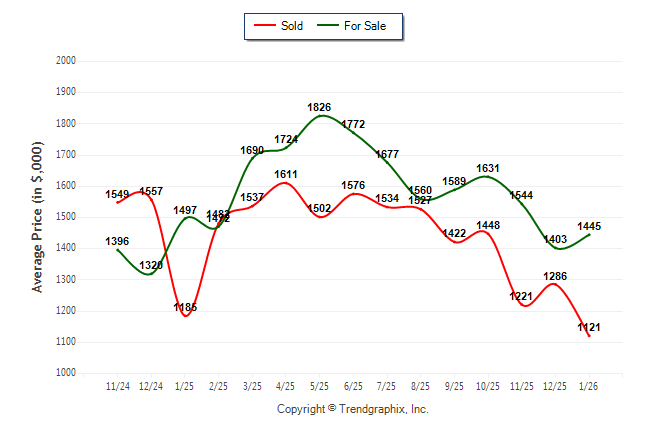 January 2026 Average For Sale Price was Neutral and Average Sold Price was Depreciating**