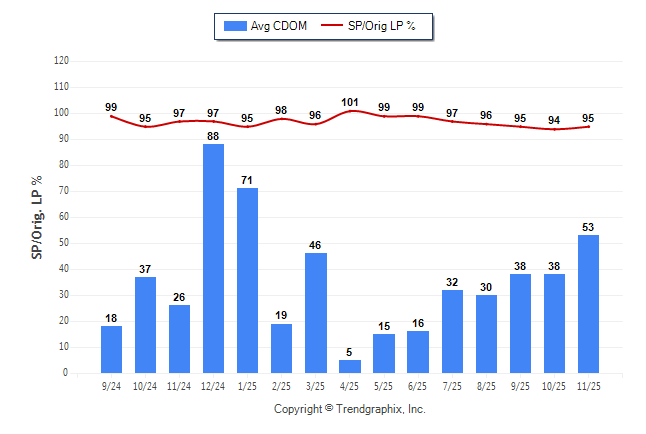 November 2025 Average Continuous Days on Market trend was Rising and Sold/Original List Price Ratio Remains Steady**