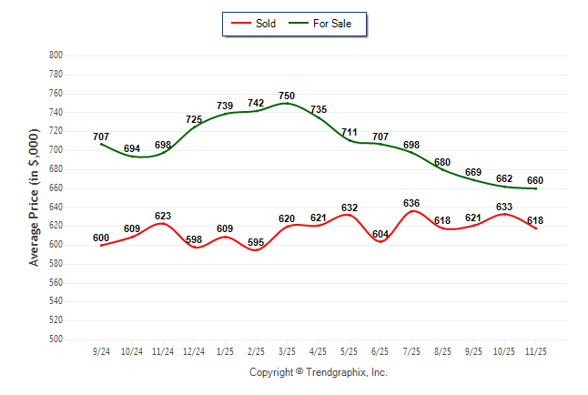 November 2025 Average For Sale Price was Depreciating and Average Sold Price was Neutral**
