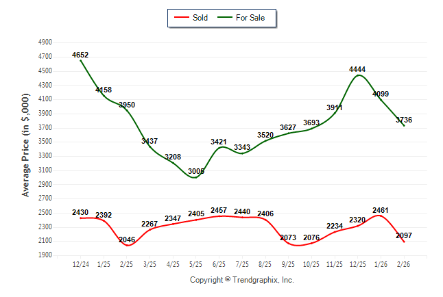 February 2026 Average For Sale Price was Neutral and Average Sold Price was Neutral**