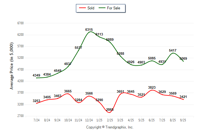 September 2025 Average For Sale Price was Neutral and Average Sold Price was Depreciating**