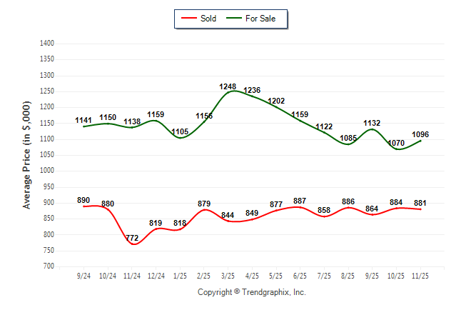 November 2025 Average For Sale Price was Neutral and Average Sold Price was Neutral**