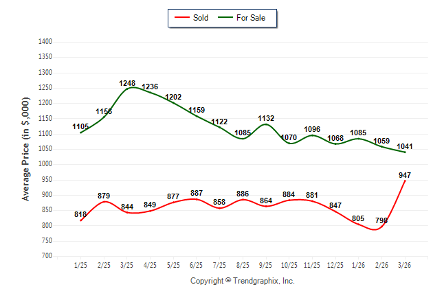 March 2026 Average For Sale Price was Depreciating and Average Sold Price was Neutral**