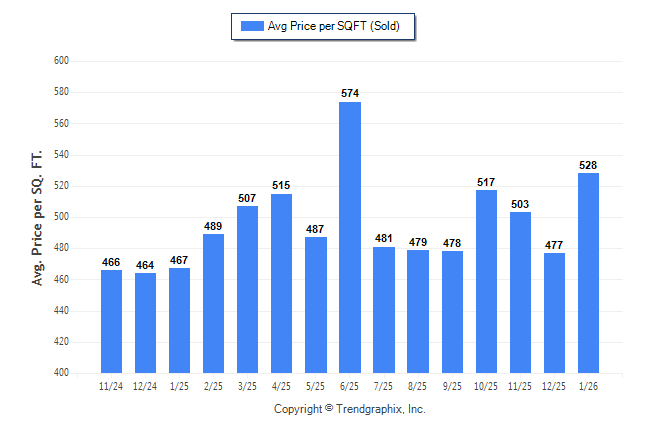 January 2026 Average Sold Price per Square Footage was Appreciating**