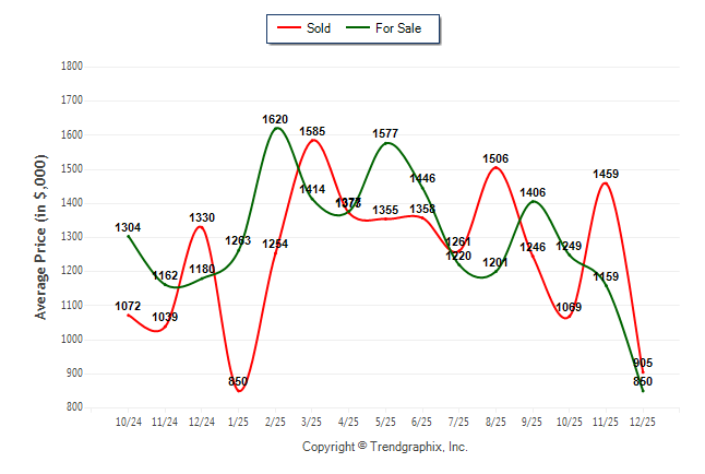 December 2025 Average For Sale Price was Depreciating and Average Sold Price was Depreciating**