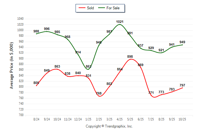 October 2025 Average For Sale Price was Neutral and Average Sold Price was Neutral**