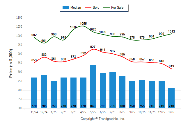 January 2026 Median Price was Depreciating, Avg. For Sale Price was Appreciating, and Avg. Sold Price was Depreciating**