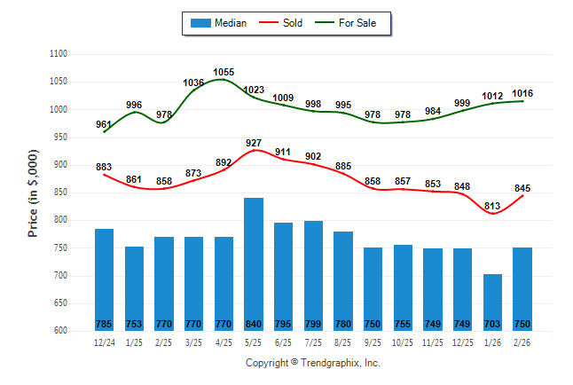 February 2026 Median Price was Neutral, Avg. For Sale Price was Appreciating, and Avg. Sold Price was Neutral**