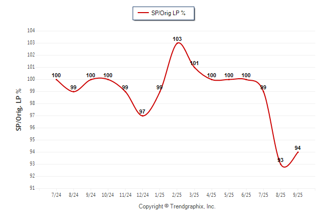 September 2025 Sold/Original List Price Ratio Remains Steady**