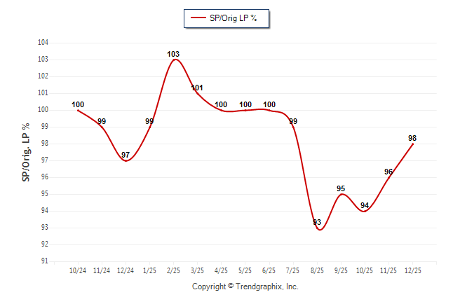 December 2025 Sold/Original List Price Ratio Remains Steady**