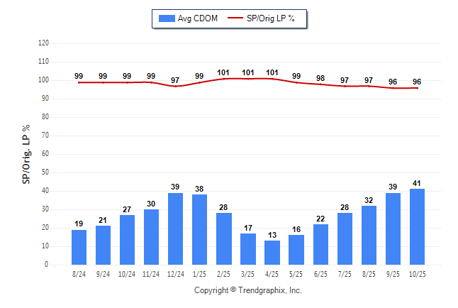 October 2025 Average Continuous Days on Market trend was Rising and Sold/Original List Price Ratio was Falling**