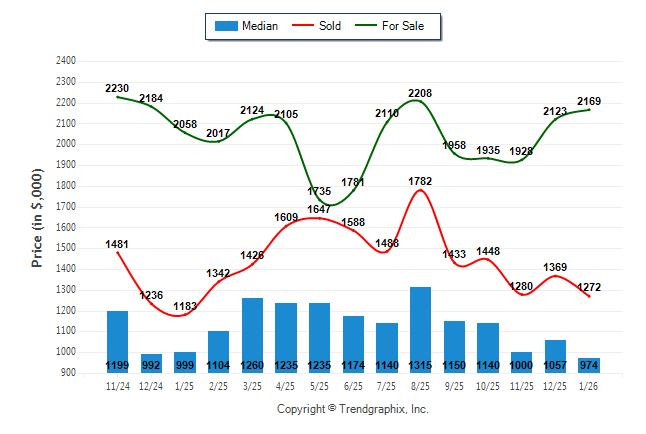 January 2026 Median Price was Depreciating, Avg. For Sale Price was Appreciating, and Avg. Sold Price was Depreciating**