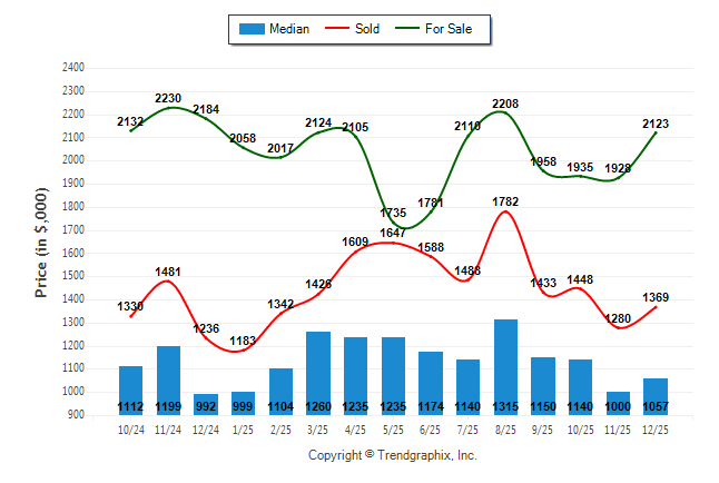 December 2025 Median Price was Neutral, Avg. For Sale Price was Neutral, and Avg. Sold Price was Neutral**