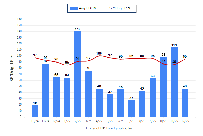 December 2025 Average Continuous Days on Market trend Remains Steady and Sold/Original List Price Ratio Remains Steady**