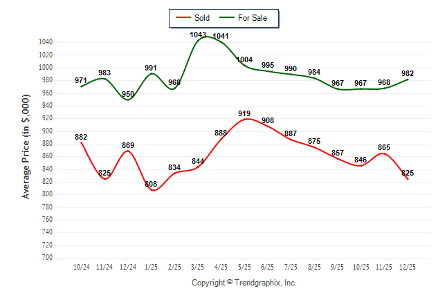 December 2025 Average For Sale Price was Neutral and Average Sold Price was Depreciating**