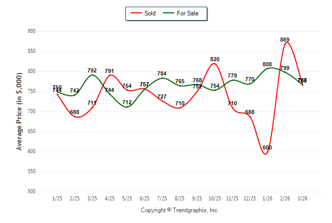March 2026 Average For Sale Price was Neutral and Average Sold Price was Neutral**