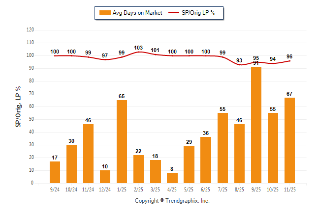 November 2025 Average Days on Market trend Remains Steady and Sold/Original List Price Ratio Remains Steady**