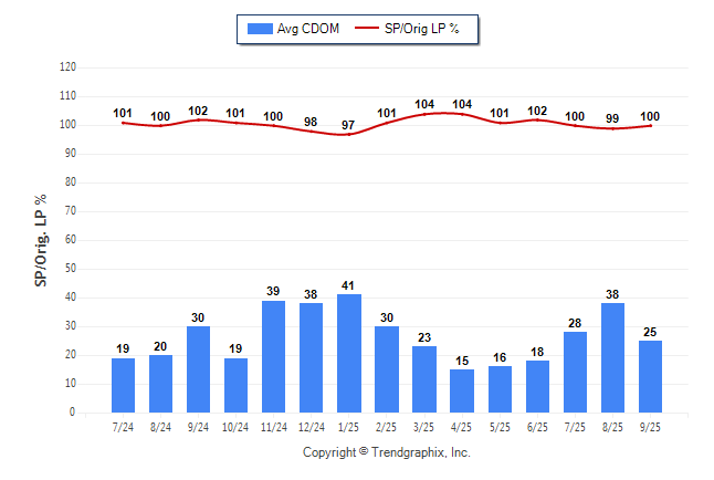 September 2025 Average Continuous Days on Market trend Remains Steady and Sold/Original List Price Ratio Remains Steady**